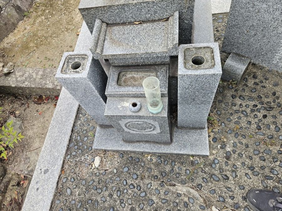 整備の詳細は巻石据直し、墓所内のコンクリート打ち直し、花立穴開け直し、水抜き、ステンレス花筒、ステンレス線香立て、防風ローソク立をさせて頂きました。