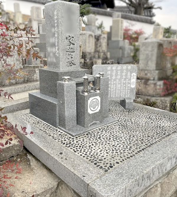 整備の詳細は巻石据直し、墓所内のコンクリート打ち直し、花立穴開け直し、水抜き、ステンレス花筒、ステンレス線香立て、防風ローソク立をさせて頂きました。